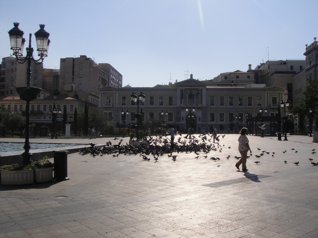 大學路上有’雅典學院"、"雅典大學"與"國立圖書館"並列成一排