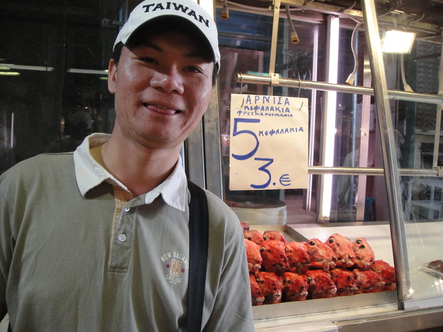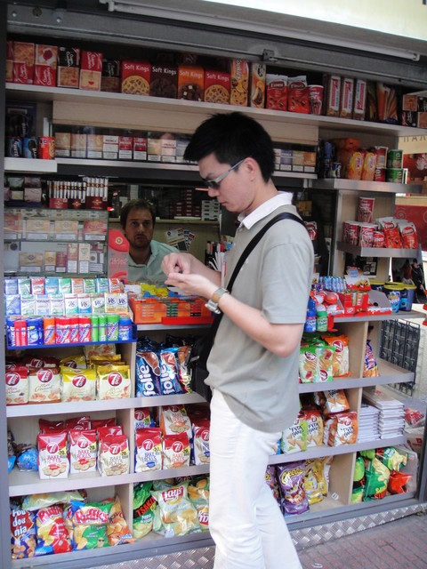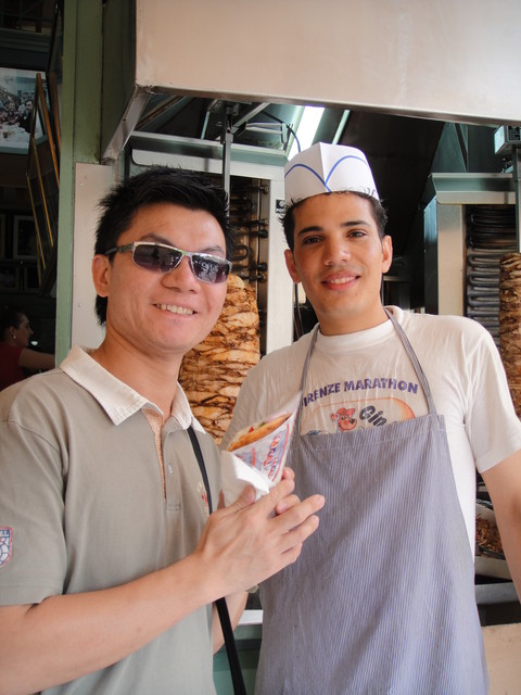 走出廣場的斜對面這家"雞肉絲(Gyros;希臘風沙威瑪)"與"死不lucky(Souvlaki;烤肉串)"專賣店