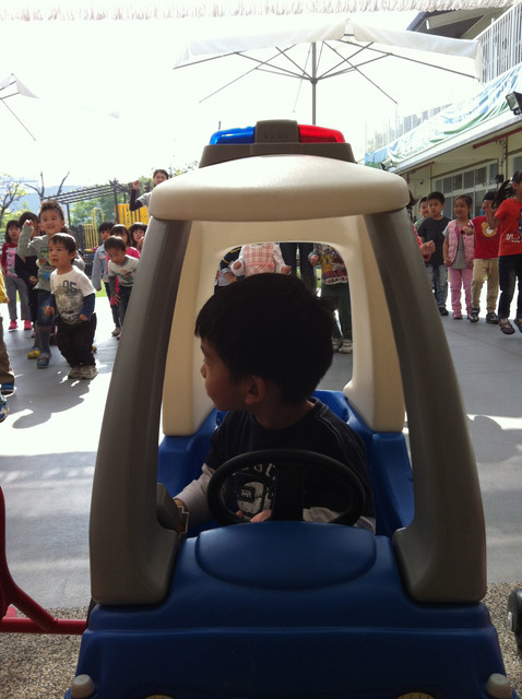 鼓勵後也還算平和的跟著小火車隊伍前進