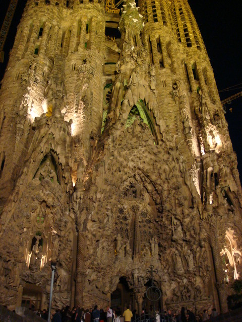 晚上的聖家堂很漂亮 正好有人在戶外辦趴 有吃有喝熱鬧ㄉ很