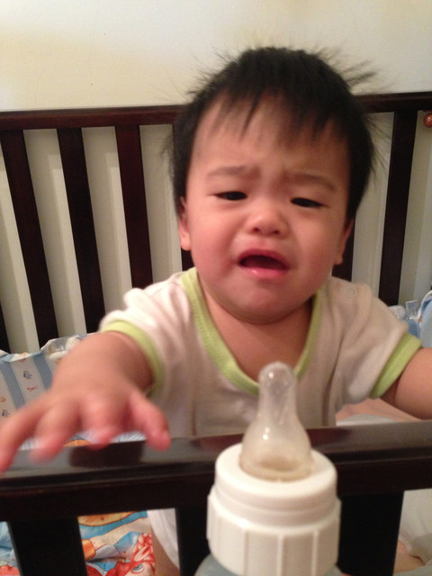 兩手一攤,讓奶瓶掉下去@#!$%&.......